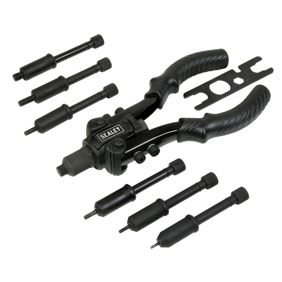 • 11-Nozzles to accept blind rivets up to 6.4 mm and rivet nuts up to M10.