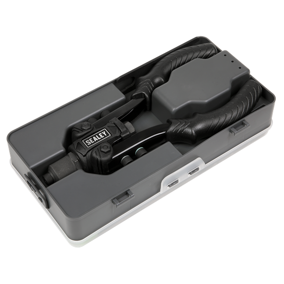 • Short arms provide effortless functionality and access to restricted spaces to set rivets up to 6.4mm.