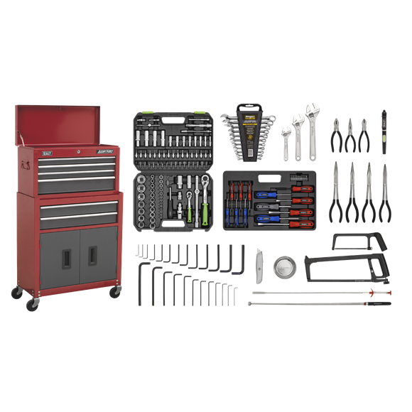 Sealey 6 Drawer Topchest & Rollcab Combination with Ball-Bearing Slides & 128pc Tool Kit