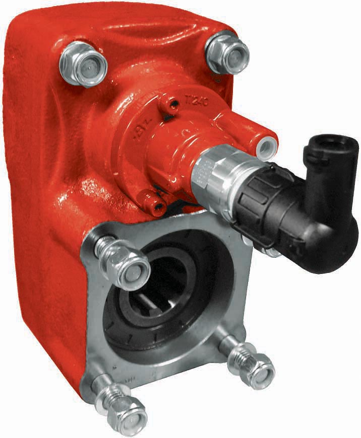 Power Take-off two gears, internal ratio 1:1,32, to connect Iso 4 bolts pumps. Pneumatic shifting, mounting on rear 4 bolts-window of the Gearbox. Optional: Passing contact switch.