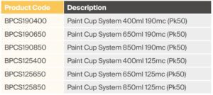 • The mixing ratio that is printed onto the cups allows for manual paint mixing to take place