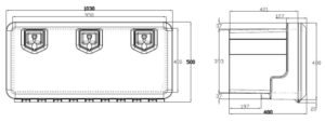 Product Description: Daken Welvet Truck Toolbox c/w Gas Struts 155.5ltr 1030(L)x500(H)x480(D)mm