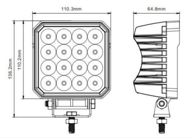 Product Description: DURITE 48W (16 X 3W) ADR APPROVED LED WORK LAMP WITH DT CONNECTOR – 12/24V