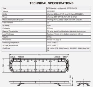 Durite high-quality R65 Class 2 4FT Amber LED Light Bar also features Stop/Tail/DI functions and comes with a touchscreen control panel, allowing you to view the active area and easily switch between flash patterns in real-time