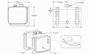Product Description: Hydraulic Steel Side Tank 150ltr c/w Fittings