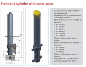 Designed for Standard applications, this FC with 137 mm diameter and 4 stages is capable of tipping up to 53 ton, reaching a total stroke of 5,180 mm. Having a maximum working pressure of 250 bar, this Hyva cylinder is capable of lifting more weight which in return allows trucks to be equipped with smaller cylinders reducing space and saving weight. This Alpha Series cylinder is mostly used in combination with a Straight Headboard Type and Trunnion Type Body Connection