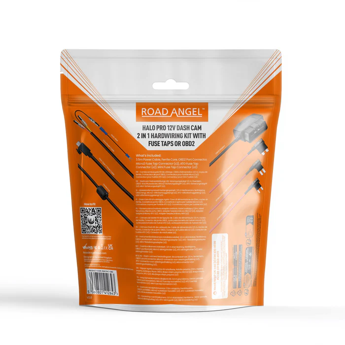 Road Angel Halo Pro Dash Cam 12V 2-in-1 Hardwire Kit- USB Type-C & OBD 2 – The Road Angel Halo Pro Hardwire Kit is a purpose-built solution to hardwire your Halo Pro dash cam directly into your vehicle’s power system, enabling a reliable always-on recording mode to monitor your car even when parked.