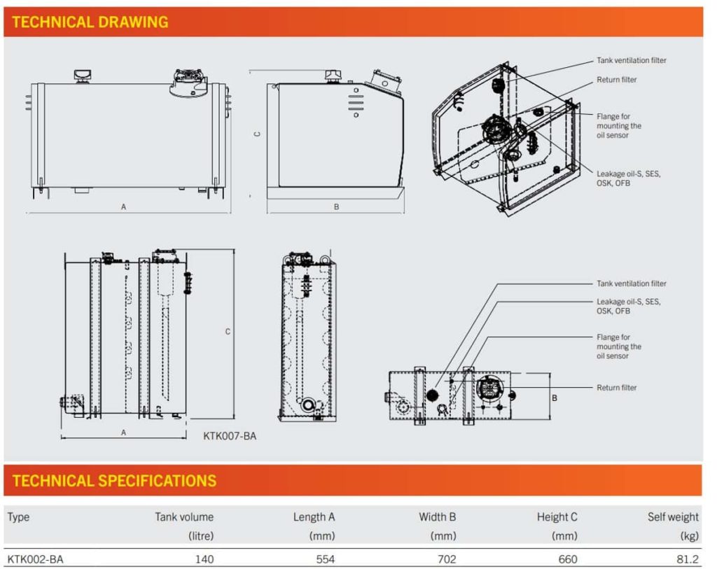 All oil tanks are equipped with an oil gauge glass, a flange for oil sensor and a return filter to minimise danger of contamination within the hydraulic system.