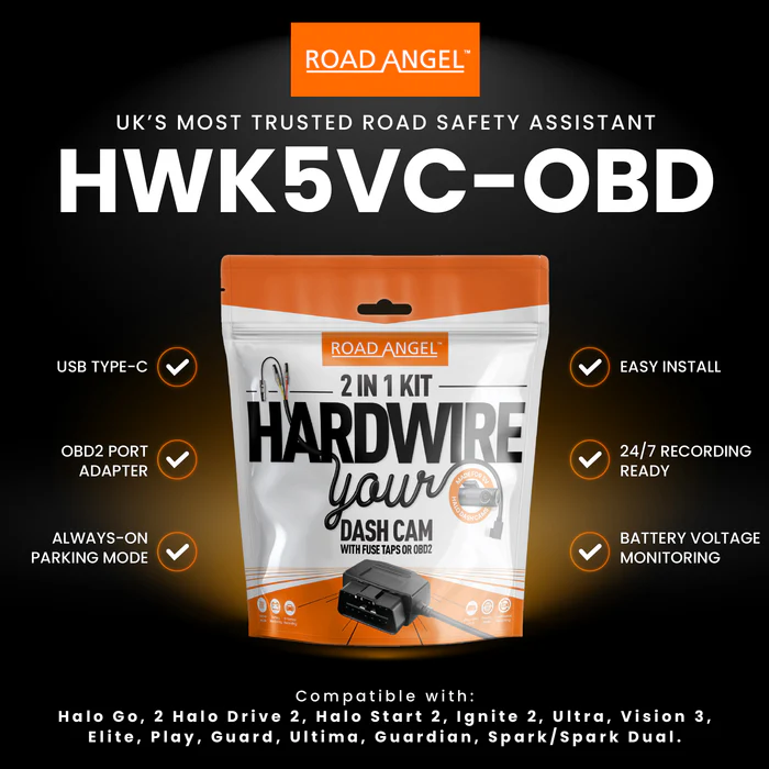 - The Road Angel Halo Hardwire Kit enables a seamless, always-on recording mode, ensuring your dash cam stays active even when your vehicle is parked.
