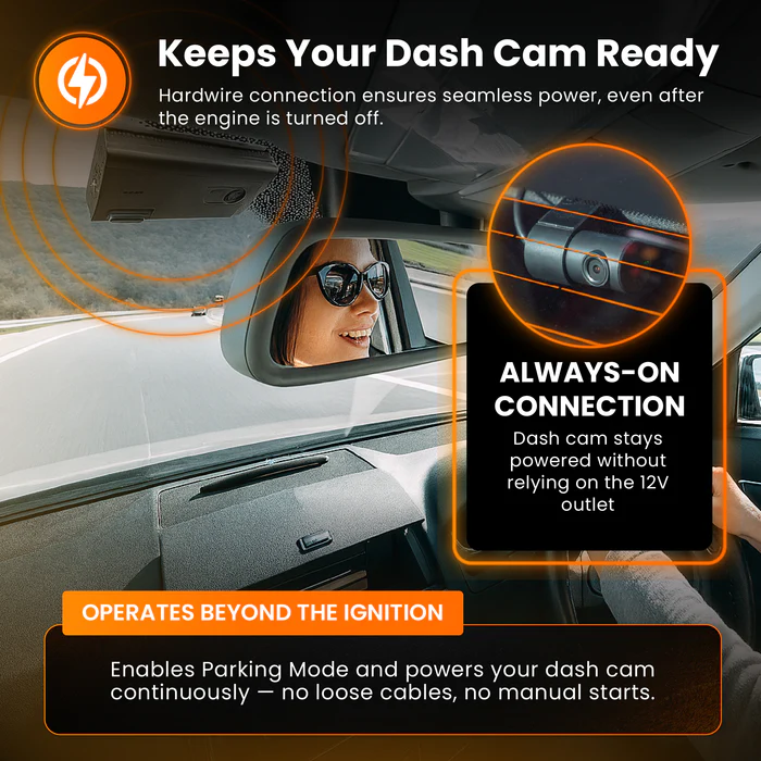- Always-On Parking Mode: Keep your dash cam recording while parked to capture every critical moment.