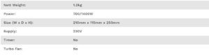 Product Description: Sealey 1400W Ceramic Fan Heater – 2 Heat Settings Model 230v