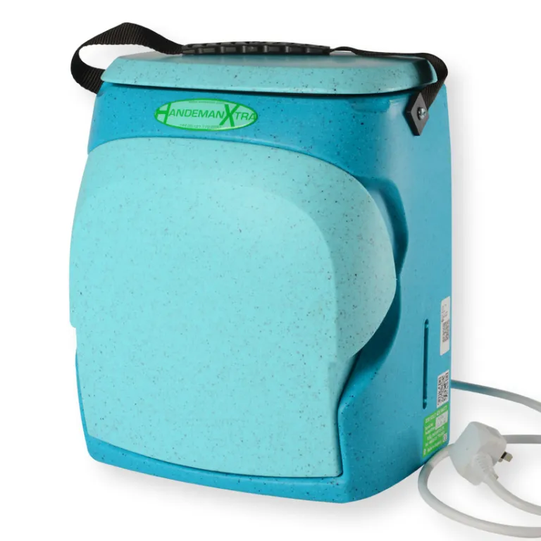 The robust and easy to clean Handeman Xtra for UK mains electricity supply can be situated next to any standard 240 volt mains supply, yet needs no plumbing.