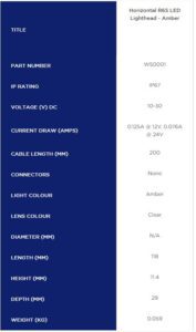 Product Description: Venta V70 Series Horizontal R65 LED Warning Light Amber 12/24V