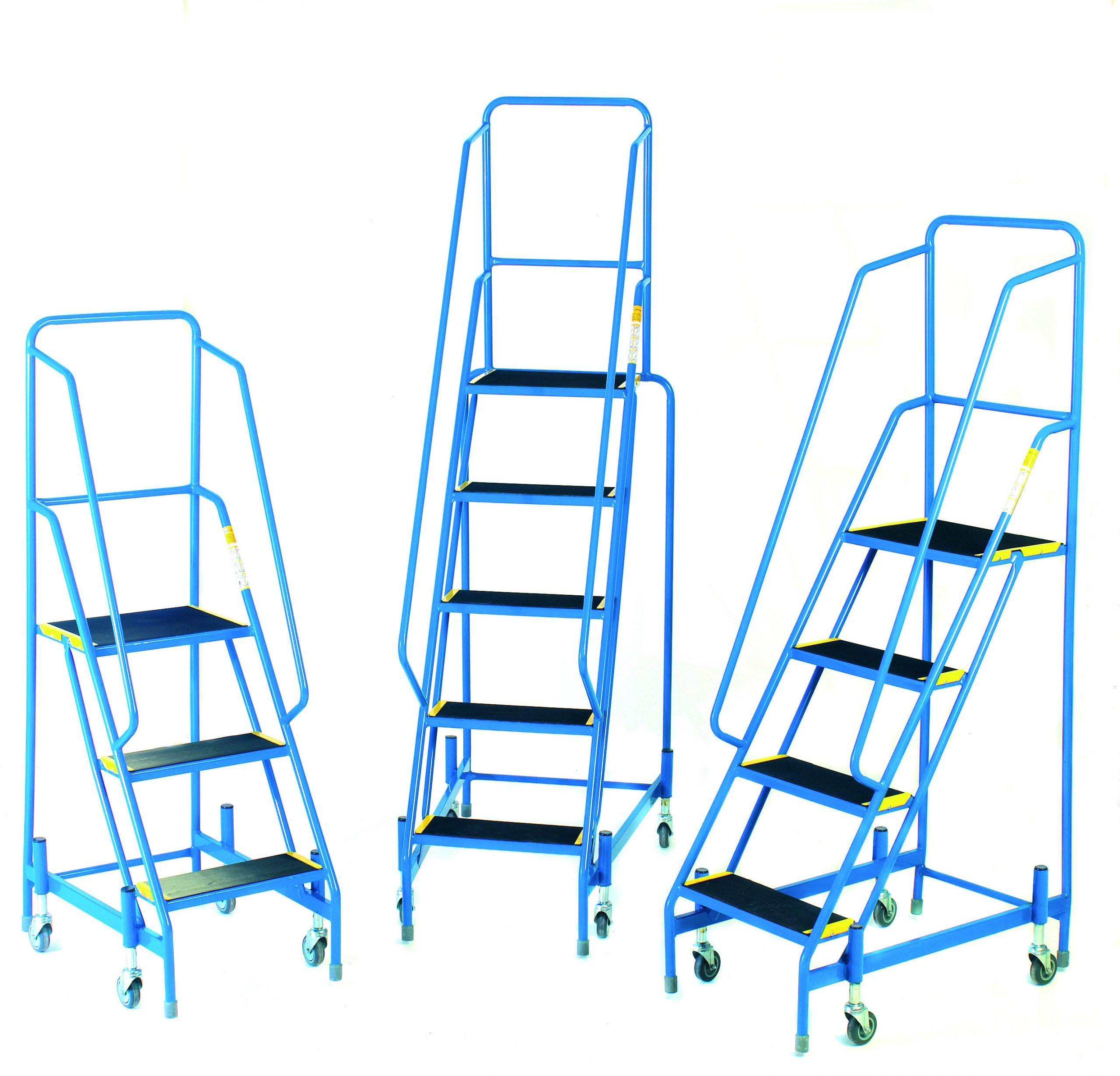 Designed for use in warehouse, factories and large retail stores, these Weight Reactive Steps are a safe alternative to the traditional ladders or stepladders, easily wheeled into place with spring-loaded castor wheels which then retract when anybody weight is applied to leave the unit firmly standing in place on the rubber feet.
